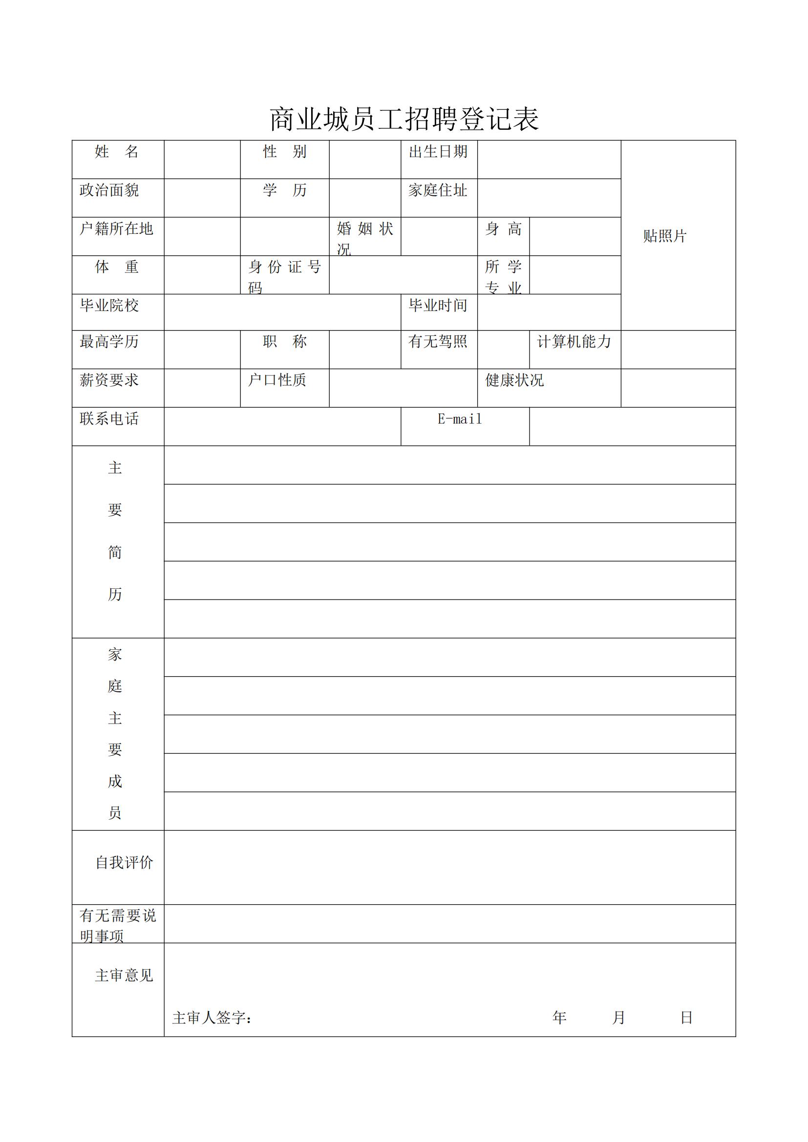 - 應聘者填寫《招聘登記表》,附近(jìn)期免冠彩色照(zhào)片。